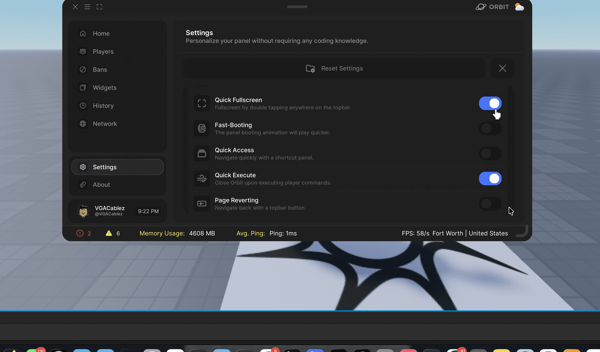 Configure Orbit straight from the panel. Want a simple-to-use shortcut panel? Enable it.