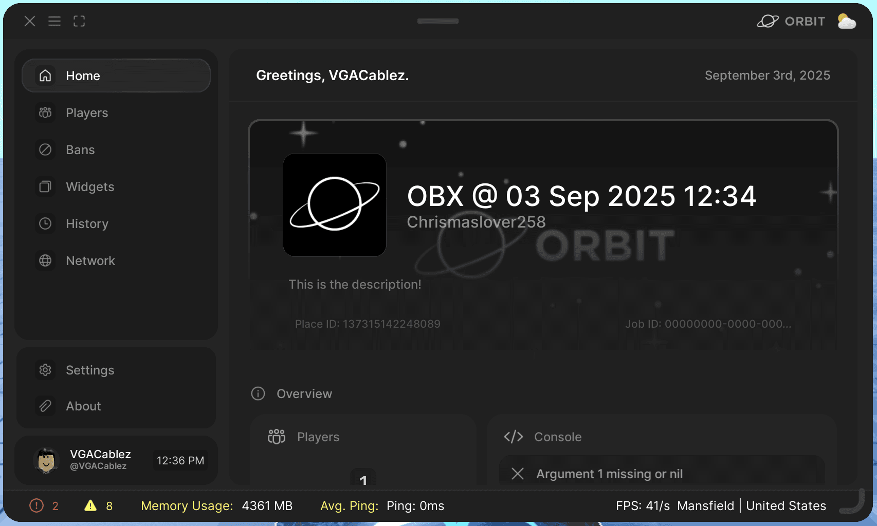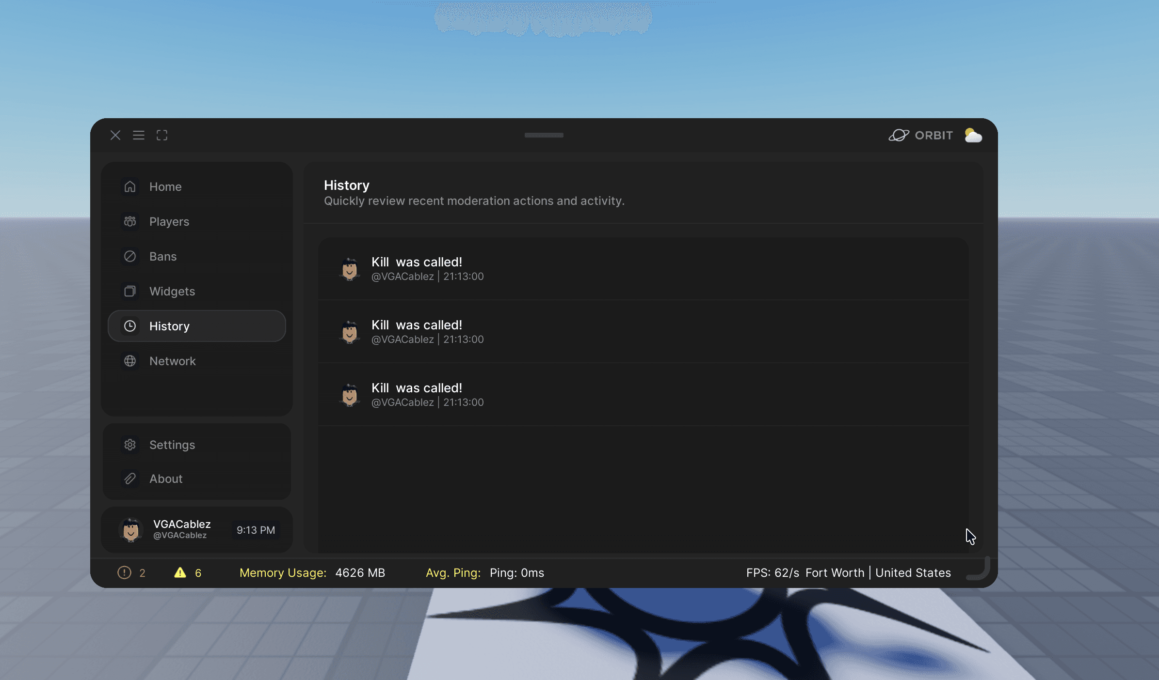 Our newest product, Orbit, is the comprehensive administration platform for Roblox developers. Streamline user management, monitor memory usage, and ensure bad actors are not ruining your games, so you can focus on what matters most – keeping your games running smoothly!